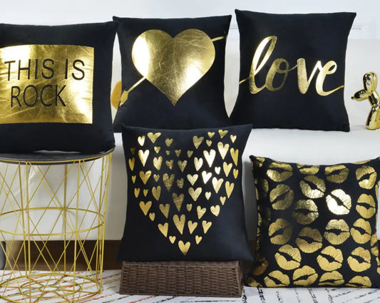 Modern Black and Gold Velvet Cushion Covers, Luxury Peach Skin Throw Pillow Cases, Designer Inspired Pillowcases for Sofa, Chair, Couch, Bed, Living Room, Bedroom, and Home Decor