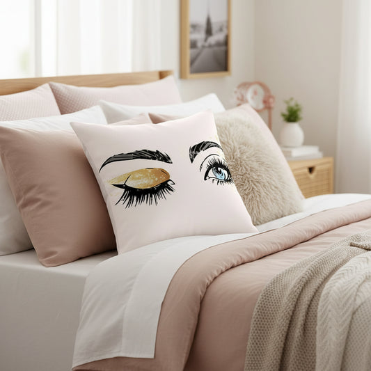 Luxury Makeup Eyelash Cushion Covers, Modern Beauty Themed Throw Pillow Cases, Decorative Peach Velvet Pillowcases for Sofa, Chair, Couch, Bed, Living Room, Bedroom and Home Decor